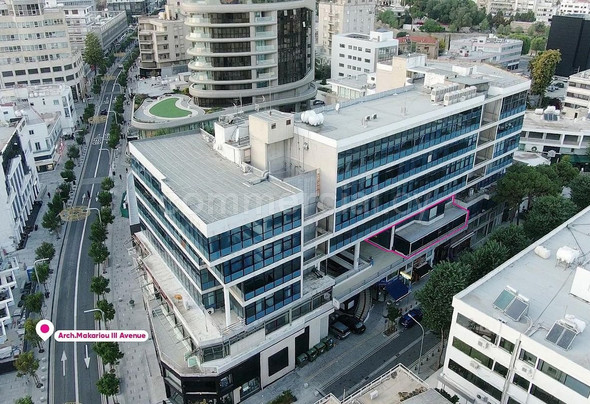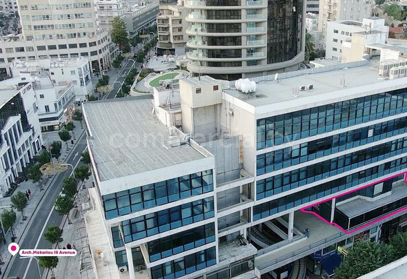 Prime Two-Storey Office Spaces in Galaxias Commercial Center, Makariou Avenue, Nicosia Located on the first and second floors of the well-established Galaxias Commercial Center on Makariou Avenue, Nicosia, these office spaces offer a professional and functional environment. The first floor features a welcoming reception area, partitioned offices, a kitchen, a server room, and restrooms, covering approximately 280 sq.m. of internal space. It also includes around 3 sq.m. of covered verandas and an additional 86 sq.m. of uncovered verandas, providing ample outdoor space. The second floor is designed with an open-plan layout, complemented by a kitchen and two offices, one of which is en-suite. It offers approximately 121 sq.m. of internal space, ideal for a variety of office configurations. Both floors are equipped with high-quality finishes, including raised parquet flooring, false ceilings, air conditioning, comprehensive wiring, and a fire safety system, ensuring a comfortable and safe working environment. The office unit is easily accessible via an external staircase from the ground level and overlooks Ayias Elenis Street, offering both convenience and visibility. Additionally, the property benefits from the exclusive right to four basement parking spaces. There is a separate title deed in place. Energy Category: D