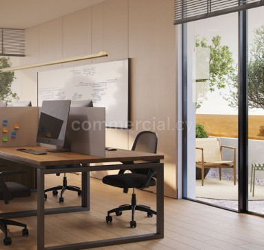 Office for sale in Paralimni area, Farmagusta. The property is an office with internal covered area of 82 sq m. It has an open plan area with offices, conference room a spacious kitchen and two quest WC. Externally has a covered veranda of 27sq m. and covered parking space on the ground floor.