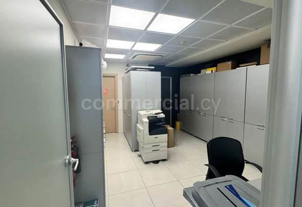 This modern office offers exceptional visibility and easy access in a prime central location, of Strovolou, Avenue. The property is centrally located, offering easy access to amenities, banks, and public transport. Designed for functionality and comfort, the space features a welcoming reception area, a spacious open-plan work area, a dedicated conference room, private offices, a fully equipped kitchen, two WCs, and a separate storage room. Key features include a raised flooring with integrated structured cabling for optimal connectivity, air-conditioning system ensuring efficient and flexible climate control, modern layout supporting collaboration and privacy.