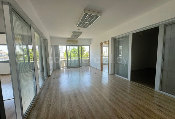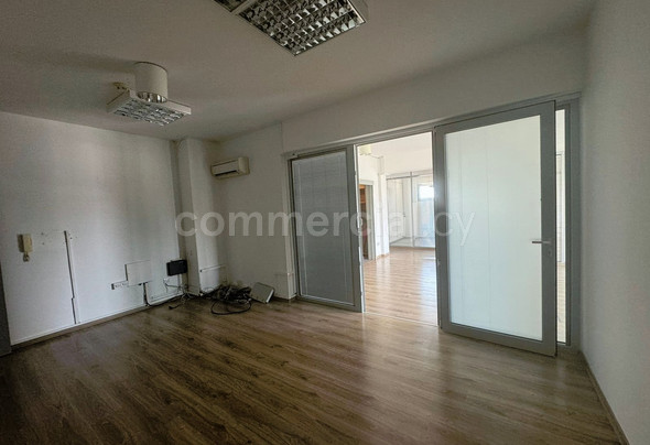 Office for Rent in Port Area, Larnaca. The property has an area of 135 sq m and comprises of a reception area, an open plan workspace, four offices, covered veranda with an area of 10 sq m. Also has a separate small kitchen and two w/c in total. The office offers one parking spaces on the ground floor and public space parking behind of the building.